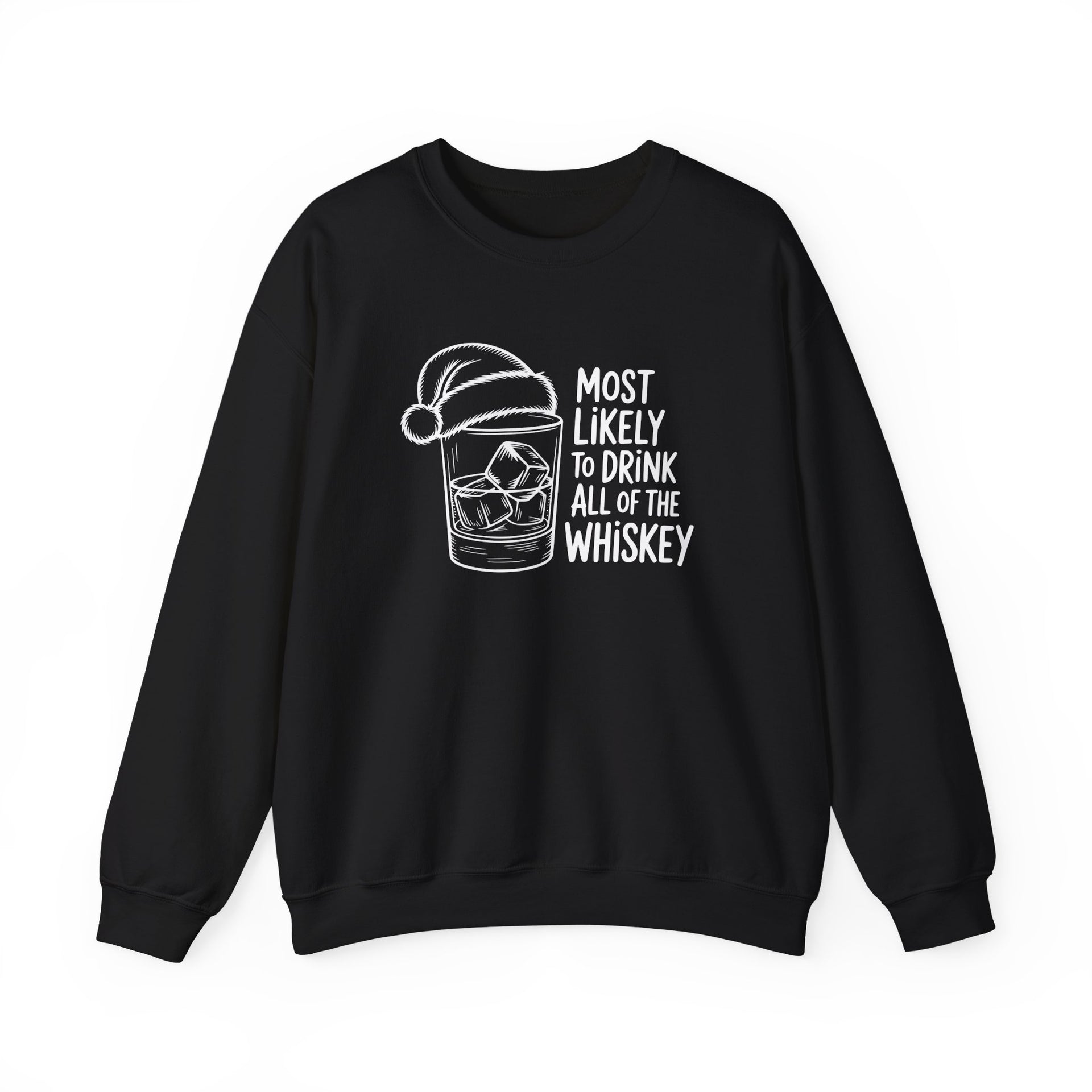 Most Likely to Drink All the Whiskey Christmas Sweatshirt – Funny Holiday Drinking Apparel