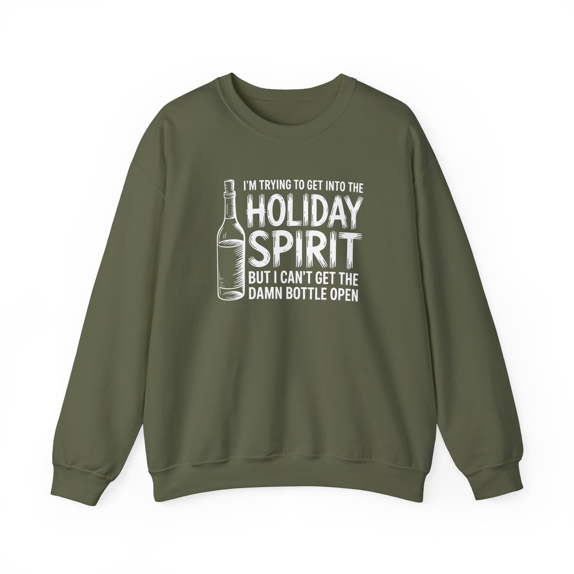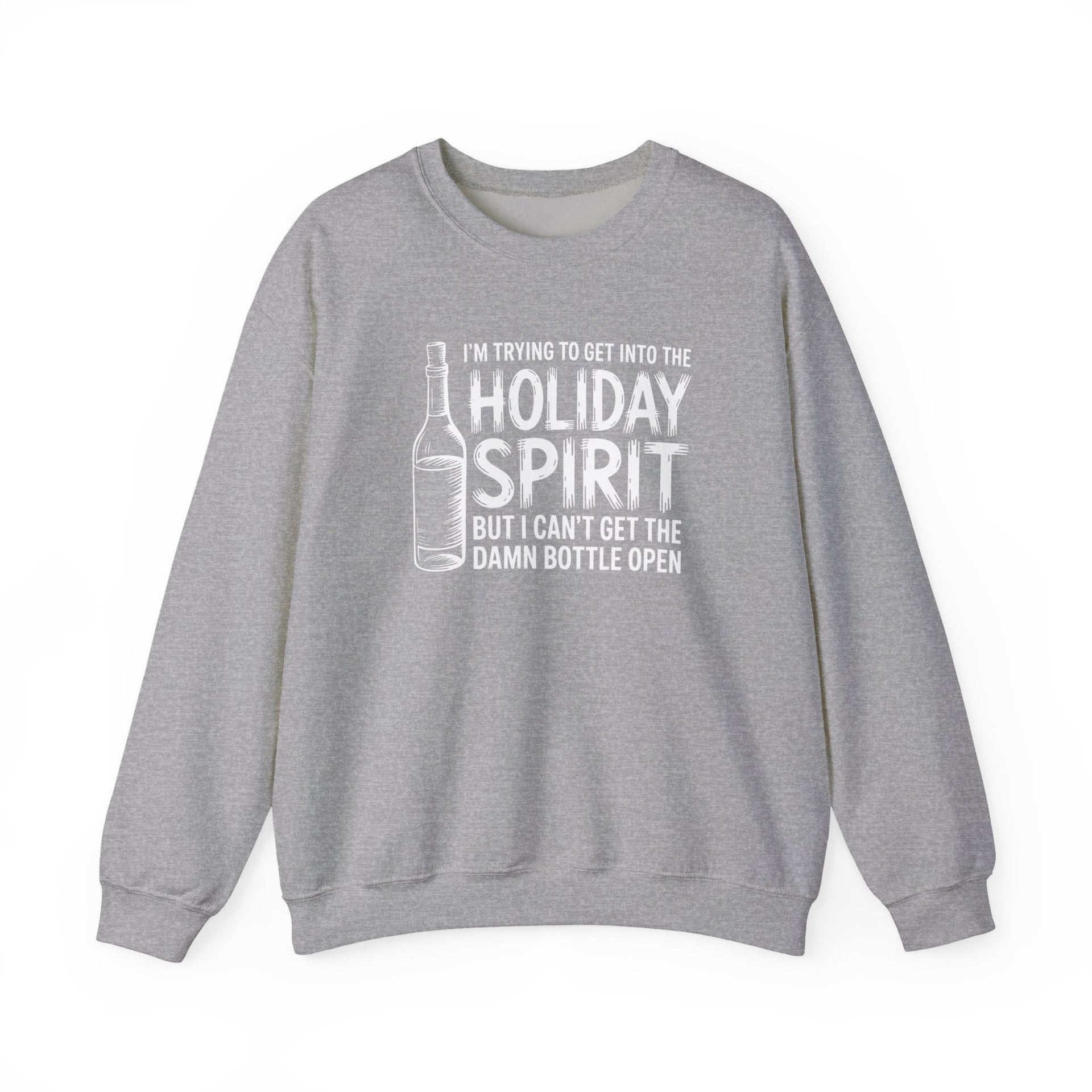 I’m Trying to Get Into the Holiday Spirit but I Can’t Get the Damn Bottle Open – Funny Christmas Sweatshirt