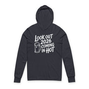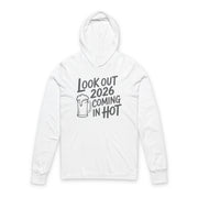 Subtlety is overrated. Some people tip-toe into the New Year quietly. Others crash into it with enthusiasm and a very large stein. This featherweight hoodie—featuring the "Coming In Hot" slogan paired with a beer mug graphic—is designed for the person who plans to attack 2026 with zero hesitation. It serves as the official warning label for the night, letting everyone know that the wearer is arriving with energy, chaos, and a serious thirst.