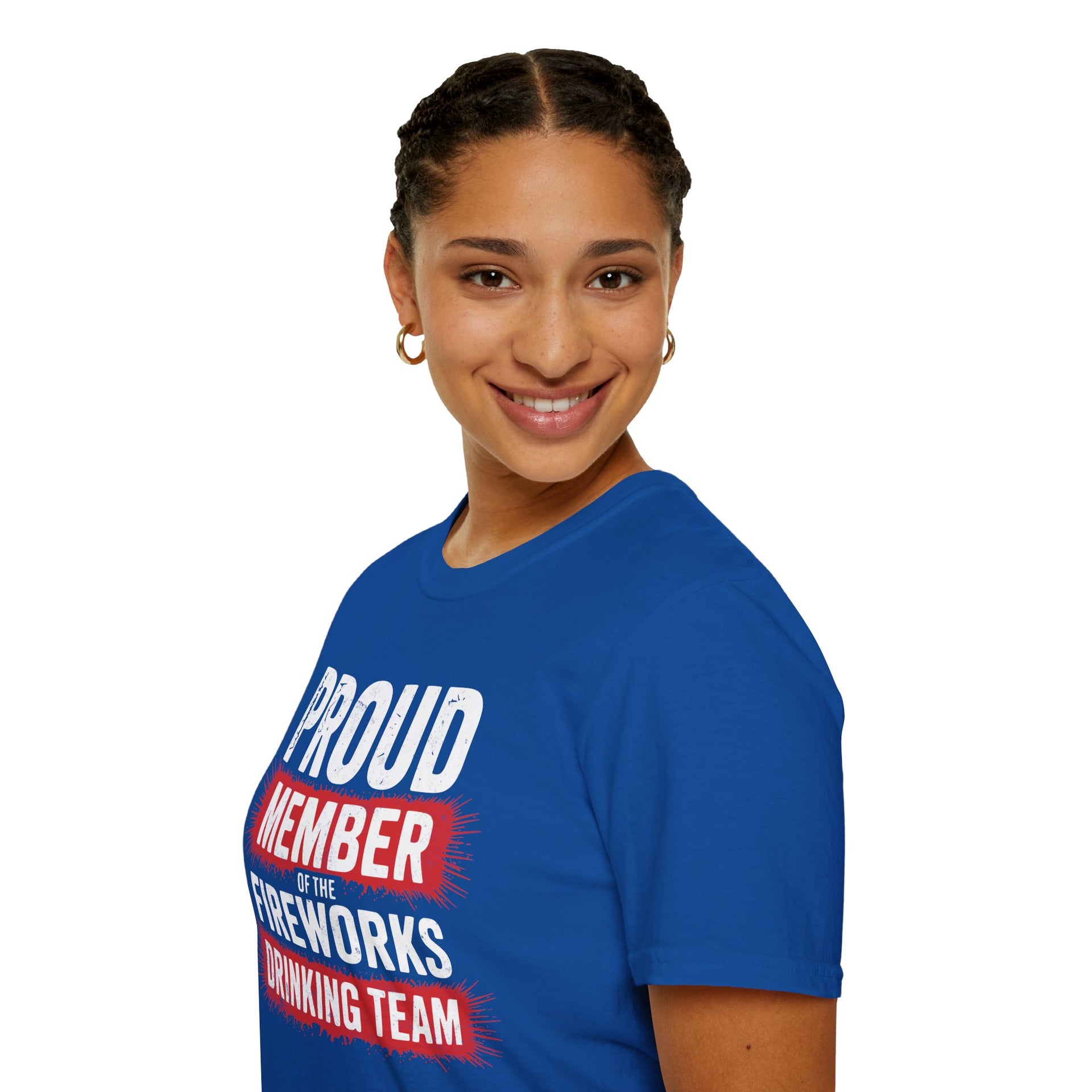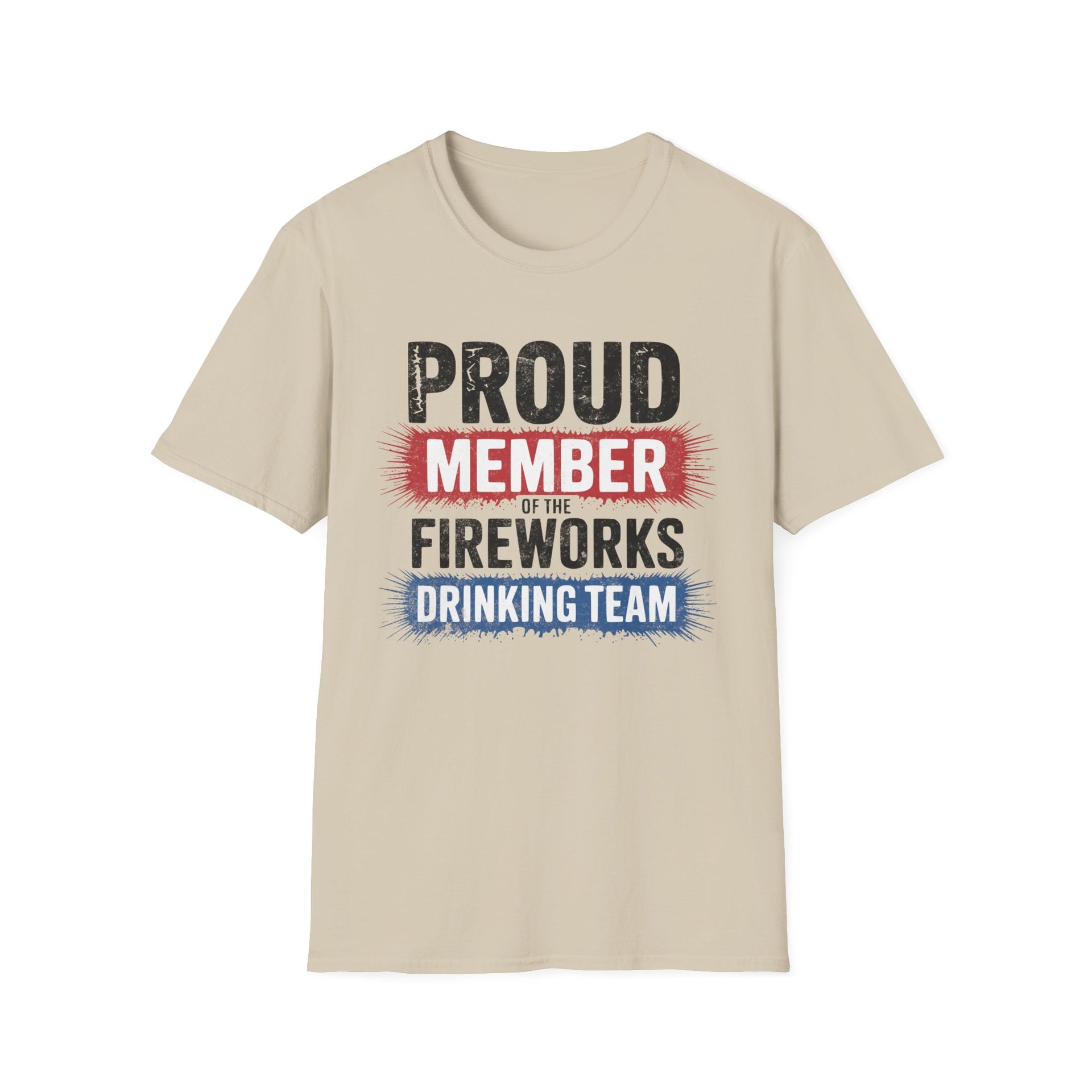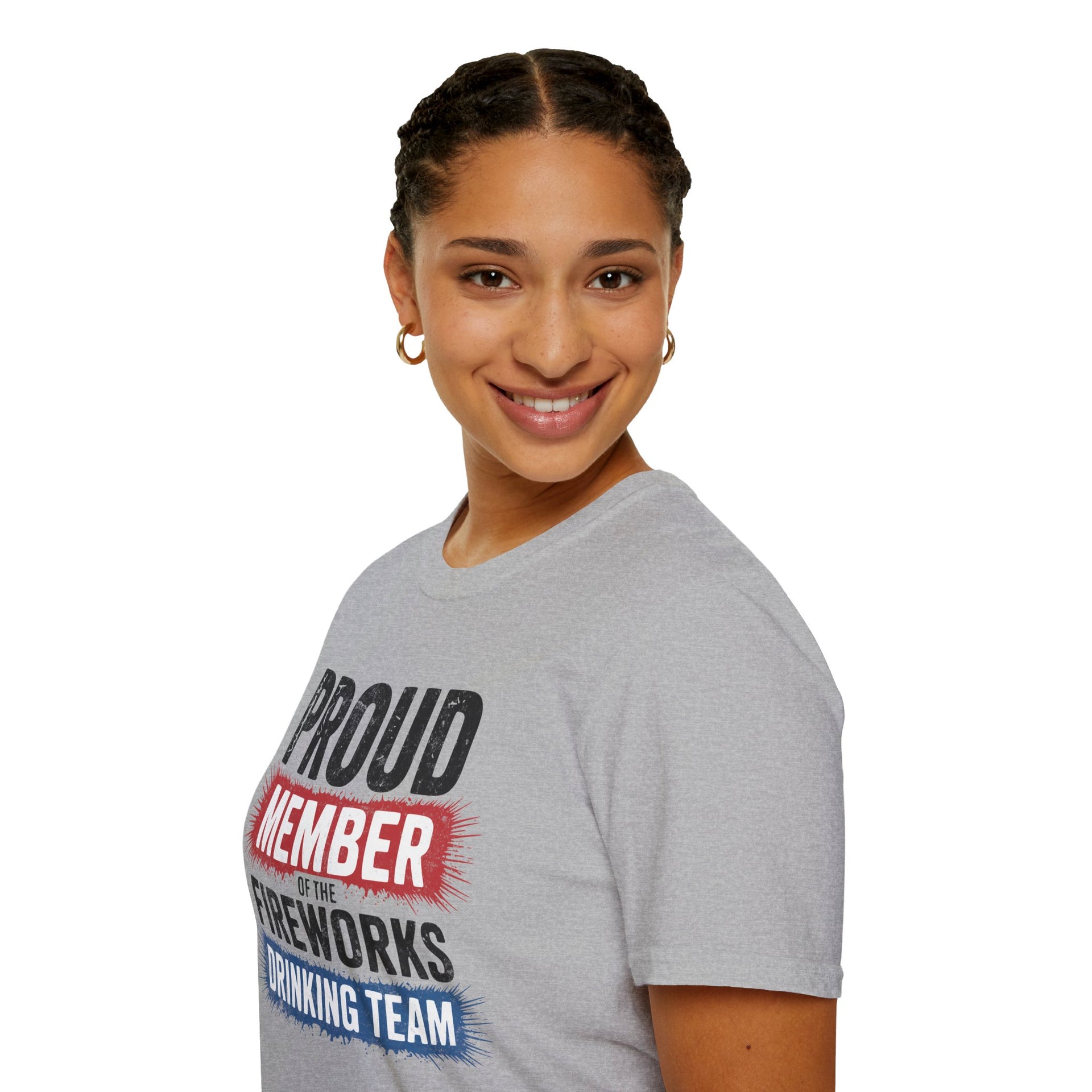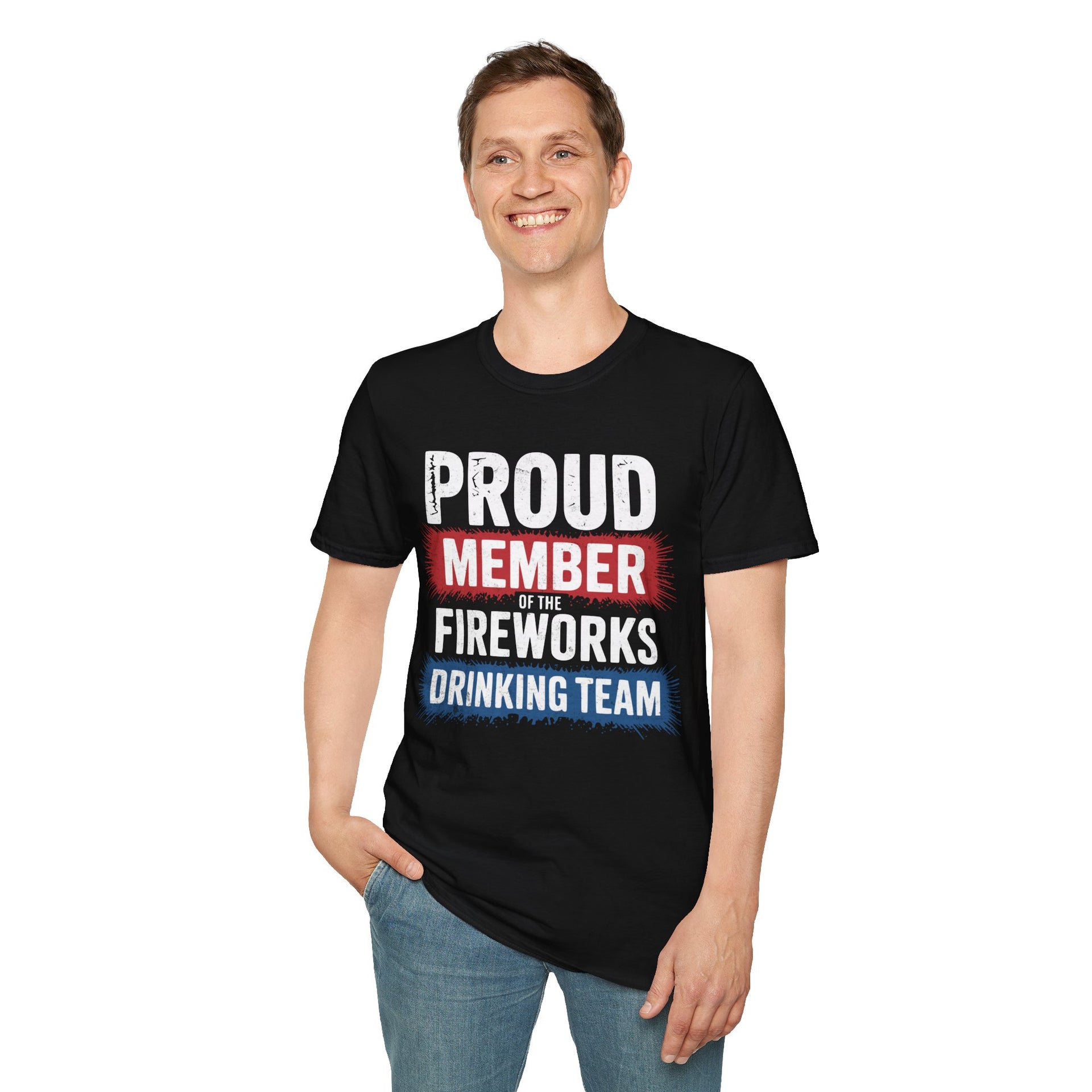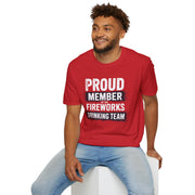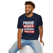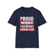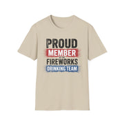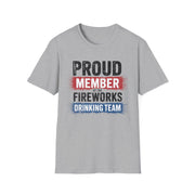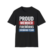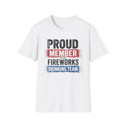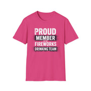 4th of July – Proud Member of the Fireworks Drinking Team – Patriotic Soft Cotton Tee